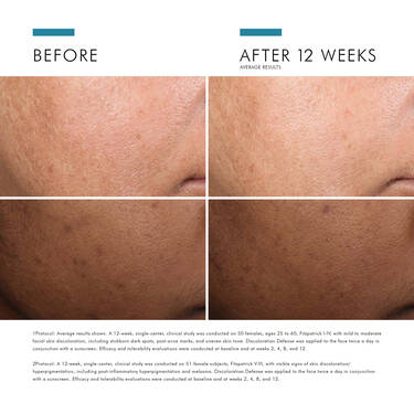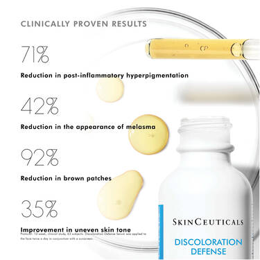 Discoloration Defense is a layerable, daily-use dark spot corrector clinically proven to reduce the appearance of key types of skin discoloration in all skin tones, including hard-to-treat forms such as stubborn brown patches and post-acne marks. Formulated with 3% tranexamic acid, 1% kojic acid, 5% niacinamide, and 5% HEPES, this formula serum for dark spots improves the appearance of skin discoloration, brightens skin, and evens skin tone in as early as 2 weeks.